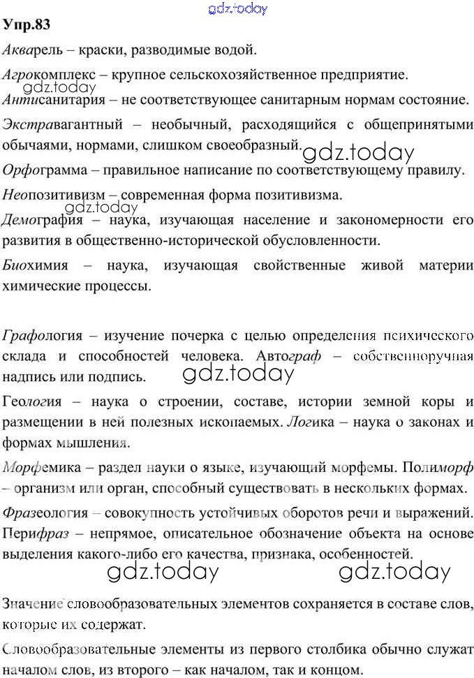 На страницах сайта gdz.today вы найдете учебный и вспомогательный материал, направленный на улучшения знаний школьной программы. ГДЗ - онлайн мир знаний Решение к упражнениям 83 Учебнику по Русскому языку для 8 класса Александрова, Загоровская Просвещение 2020