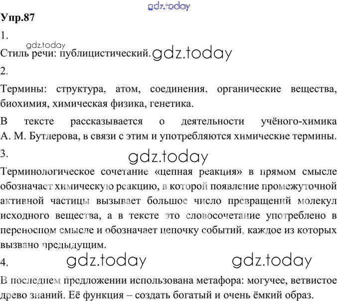 На страницах сайта gdz.today вы найдете учебный и вспомогательный материал, направленный на улучшения знаний школьной программы. ГДЗ - онлайн мир знаний Решение к упражнениям 87 Учебнику по Русскому языку для 8 класса Александрова, Загоровская Просвещение 2020