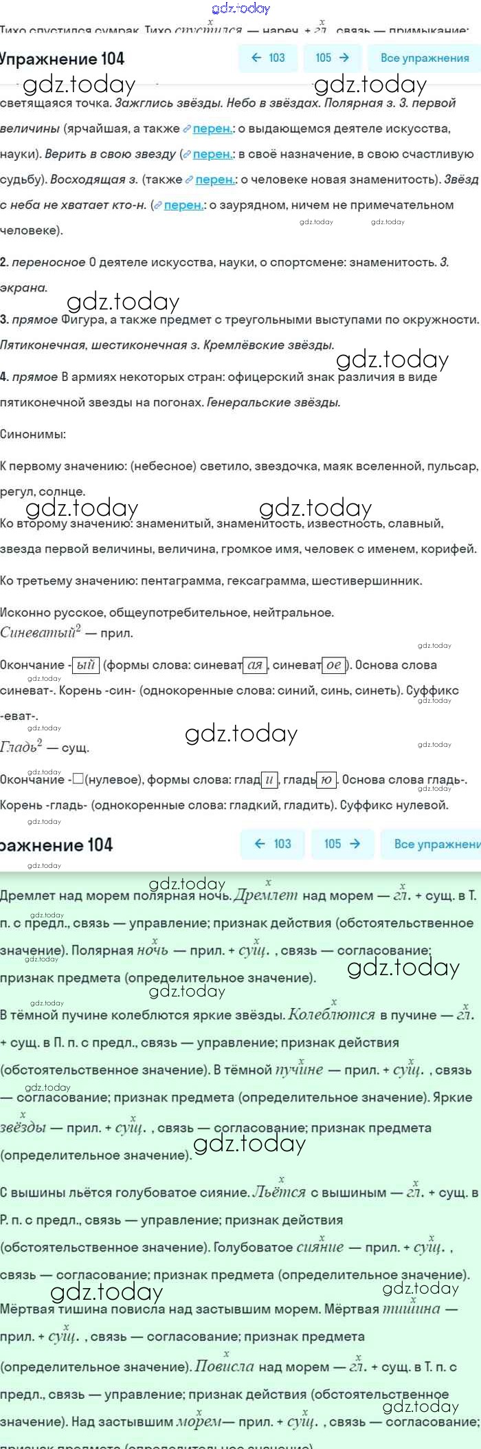 На страницах сайта gdz.today вы найдете учебный и вспомогательный материал, направленный на улучшения знаний школьной программы. ГДЗ - онлайн мир знаний Упражнения 104 Учебнику по Русскому языку для 8 класса Бархударов, Крючков Просвещение 2018