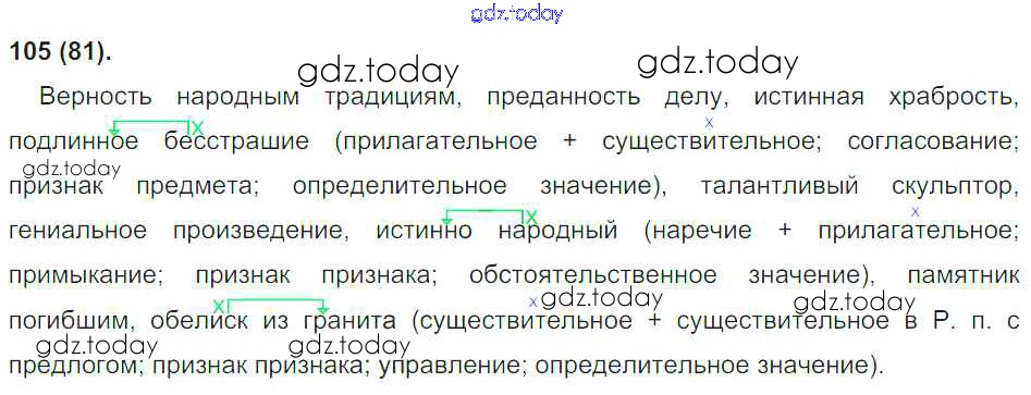 На страницах сайта gdz.today вы найдете учебный и вспомогательный материал, направленный на улучшения знаний школьной программы. ГДЗ - онлайн мир знаний Решение к упражнениям 105 Учебнику по Русскому языку для 8 класса Бархударов, Крючков Просвещение 2018