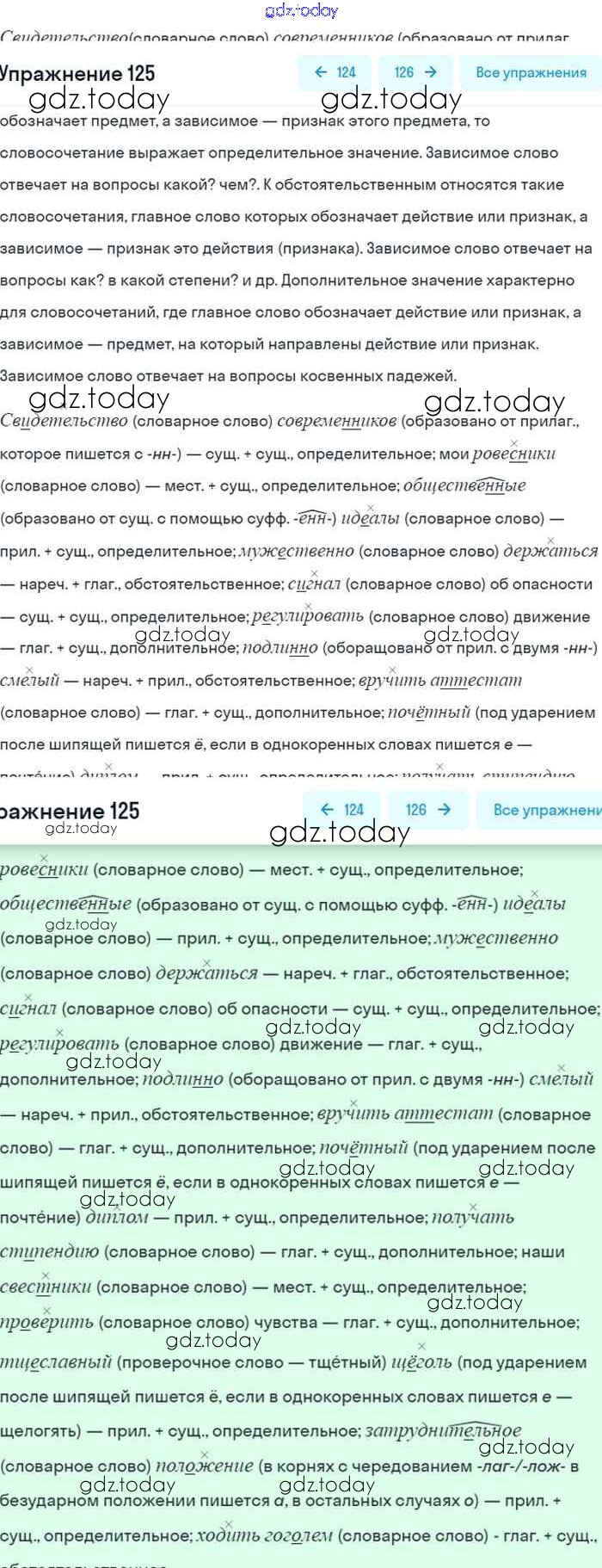 На страницах сайта gdz.today вы найдете учебный и вспомогательный материал, направленный на улучшения знаний школьной программы. ГДЗ - онлайн мир знаний Упражнения 125 Учебнику по Русскому языку для 8 класса Бархударов, Крючков Просвещение 2018