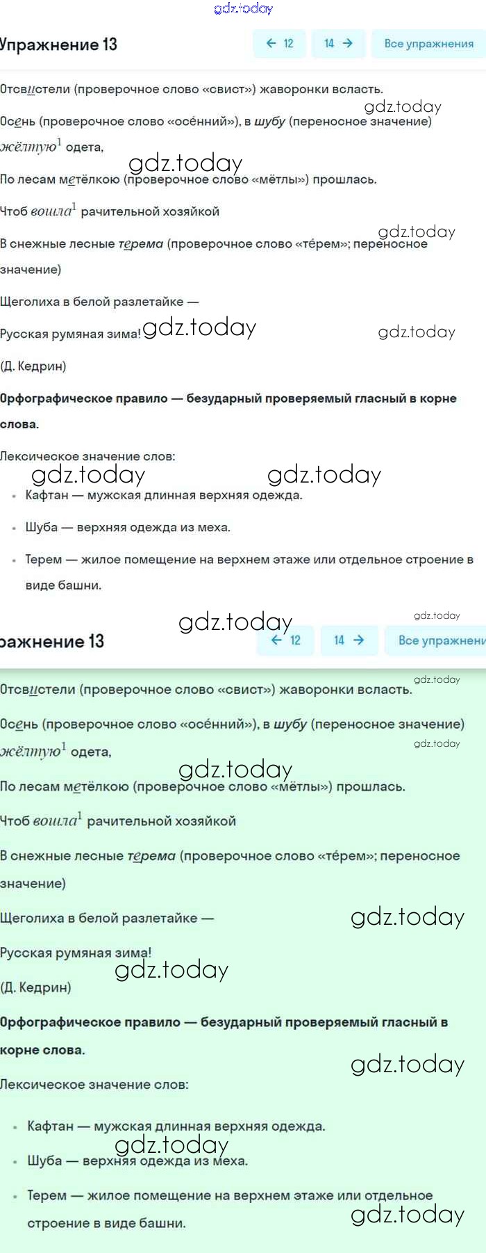На страницах сайта gdz.today вы найдете учебный и вспомогательный материал, направленный на улучшения знаний школьной программы. ГДЗ - онлайн мир знаний Упражнения 13 Учебнику по Русскому языку для 8 класса Бархударов, Крючков Просвещение 2018