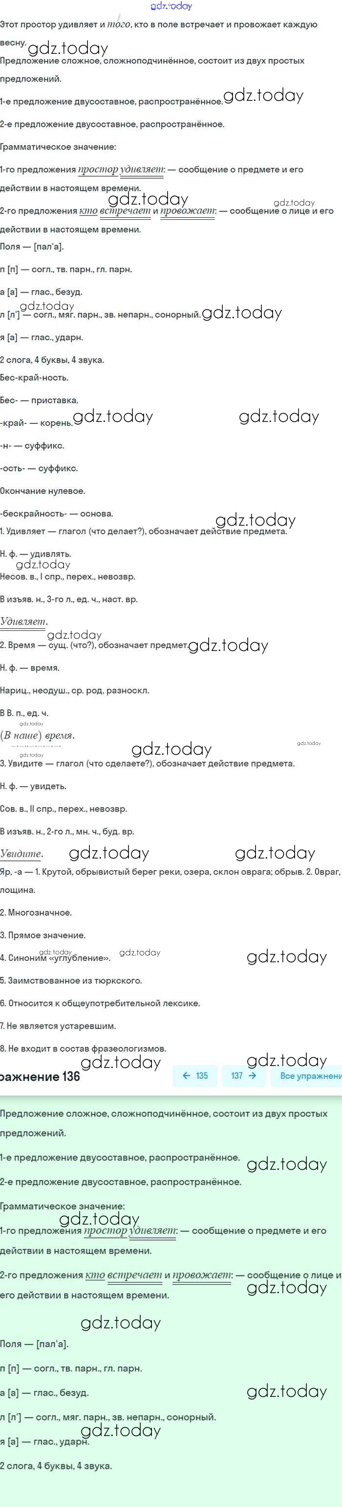 На страницах сайта gdz.today вы найдете учебный и вспомогательный материал, направленный на улучшения знаний школьной программы. ГДЗ - онлайн мир знаний Упражнения 136 Учебнику по Русскому языку для 8 класса Бархударов, Крючков Просвещение 2018