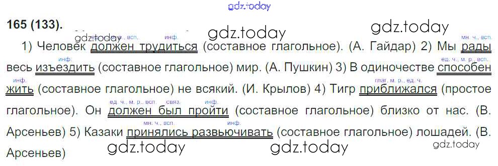 На страницах сайта gdz.today вы найдете учебный и вспомогательный материал, направленный на улучшения знаний школьной программы. ГДЗ - онлайн мир знаний Решение к упражнениям 165 Учебнику по Русскому языку для 8 класса Бархударов, Крючков Просвещение 2018