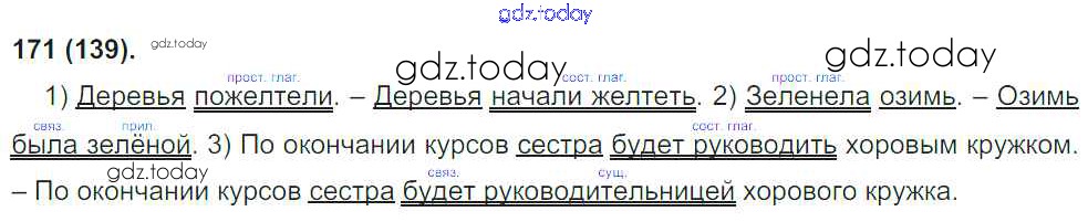 На страницах сайта gdz.today вы найдете учебный и вспомогательный материал, направленный на улучшения знаний школьной программы. ГДЗ - онлайн мир знаний Решение к упражнениям 171 Учебнику по Русскому языку для 8 класса Бархударов, Крючков Просвещение 2018