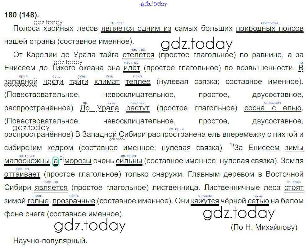 На страницах сайта gdz.today вы найдете учебный и вспомогательный материал, направленный на улучшения знаний школьной программы. ГДЗ - онлайн мир знаний Решение к упражнениям 180 Учебнику по Русскому языку для 8 класса Бархударов, Крючков Просвещение 2018