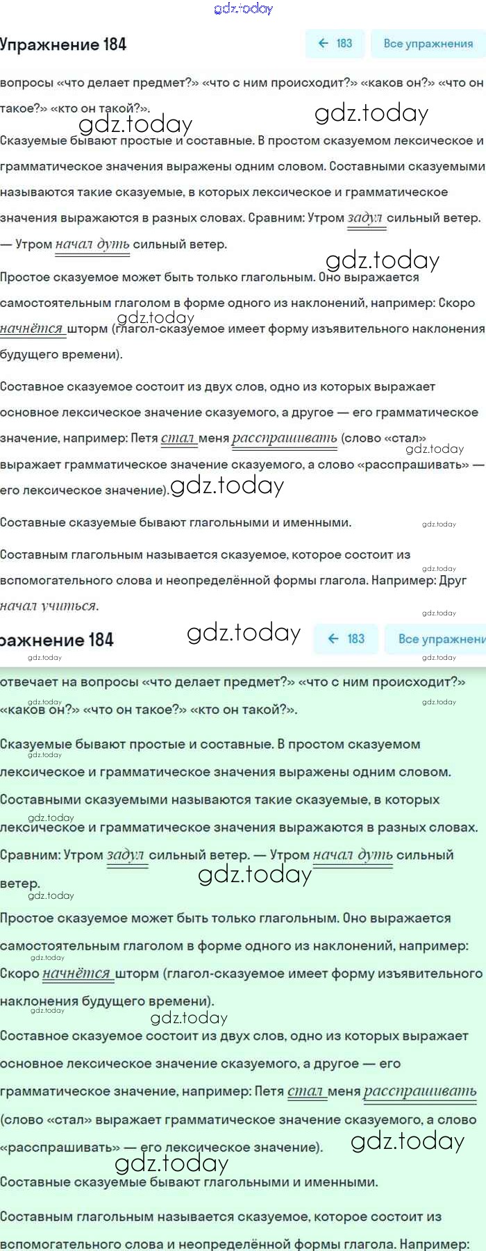 На страницах сайта gdz.today вы найдете учебный и вспомогательный материал, направленный на улучшения знаний школьной программы. ГДЗ - онлайн мир знаний Упражнения 184 Учебнику по Русскому языку для 8 класса Бархударов, Крючков Просвещение 2018