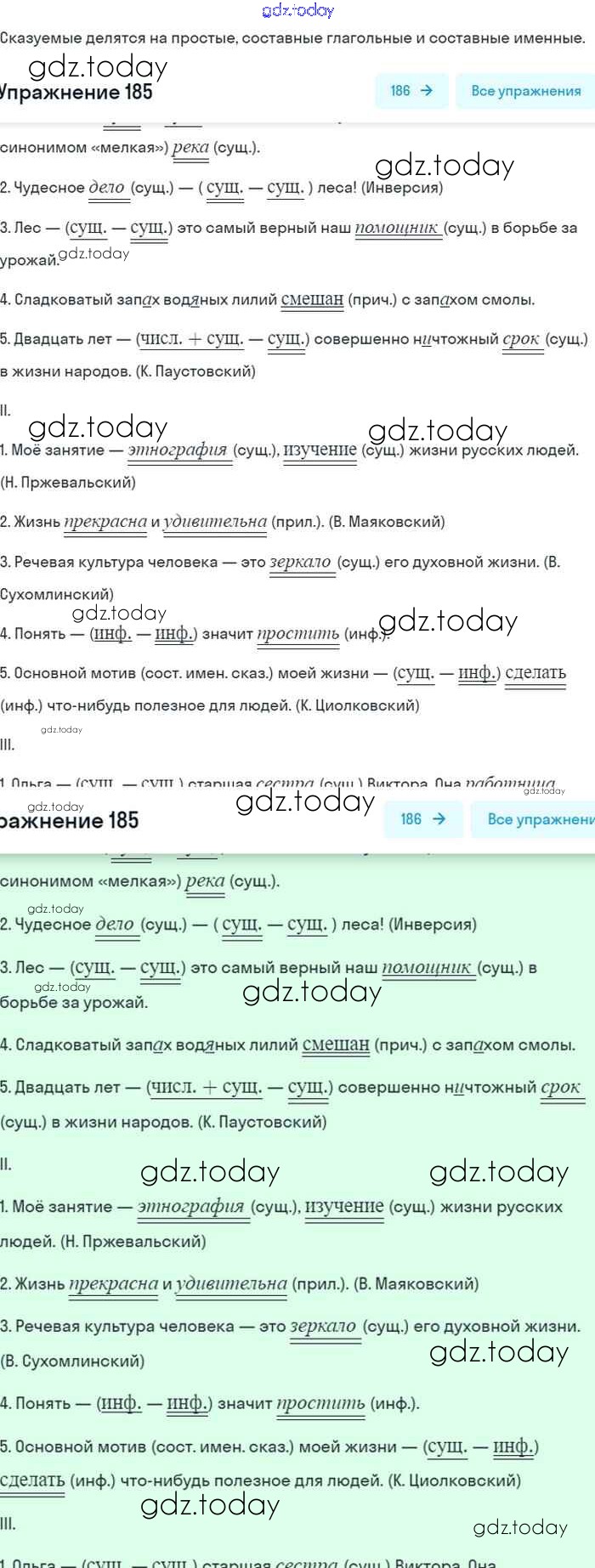 На страницах сайта gdz.today вы найдете учебный и вспомогательный материал, направленный на улучшения знаний школьной программы. ГДЗ - онлайн мир знаний Упражнения 185 Учебнику по Русскому языку для 8 класса Бархударов, Крючков Просвещение 2018