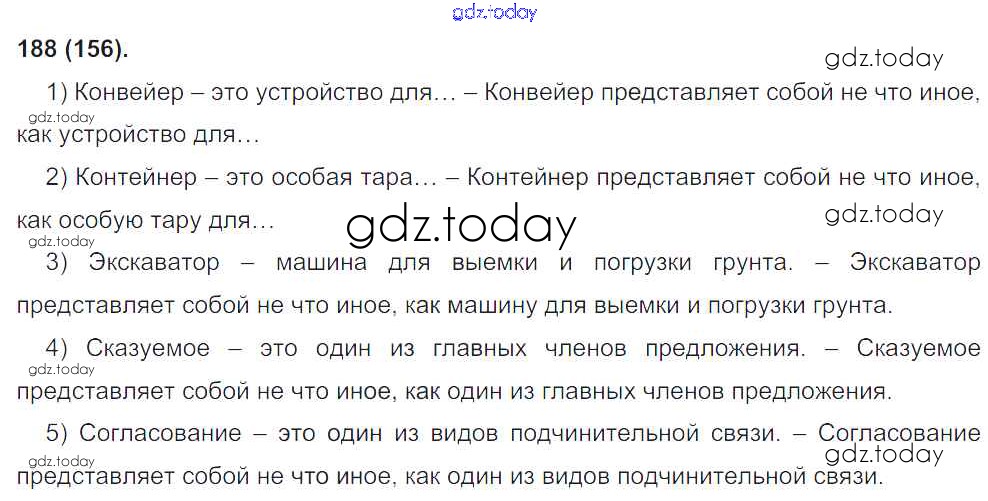 На страницах сайта gdz.today вы найдете учебный и вспомогательный материал, направленный на улучшения знаний школьной программы. ГДЗ - онлайн мир знаний Решение к упражнениям 188 Учебнику по Русскому языку для 8 класса Бархударов, Крючков Просвещение 2018