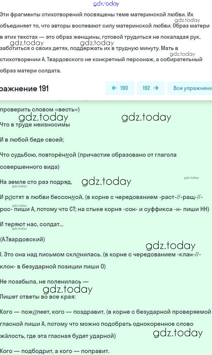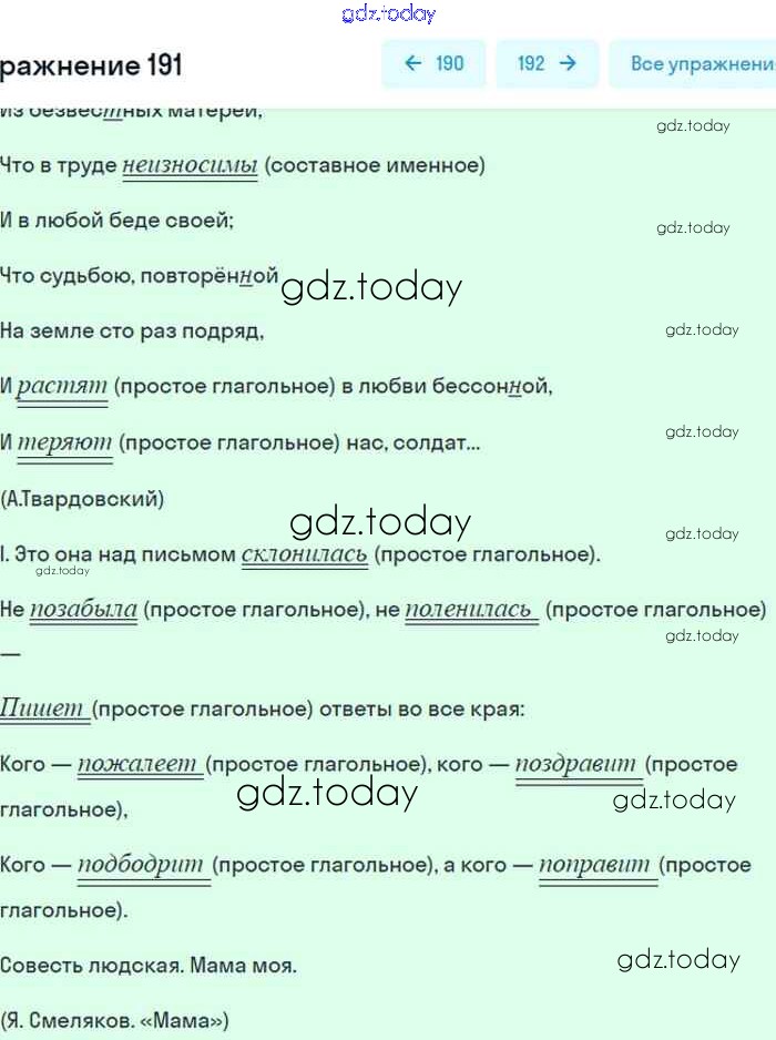 На страницах сайта gdz.today вы найдете учебный и вспомогательный материал, направленный на улучшения знаний школьной программы. ГДЗ - онлайн мир знаний Упражнения 191 Учебнику по Русскому языку для 8 класса Бархударов, Крючков Просвещение 2018
