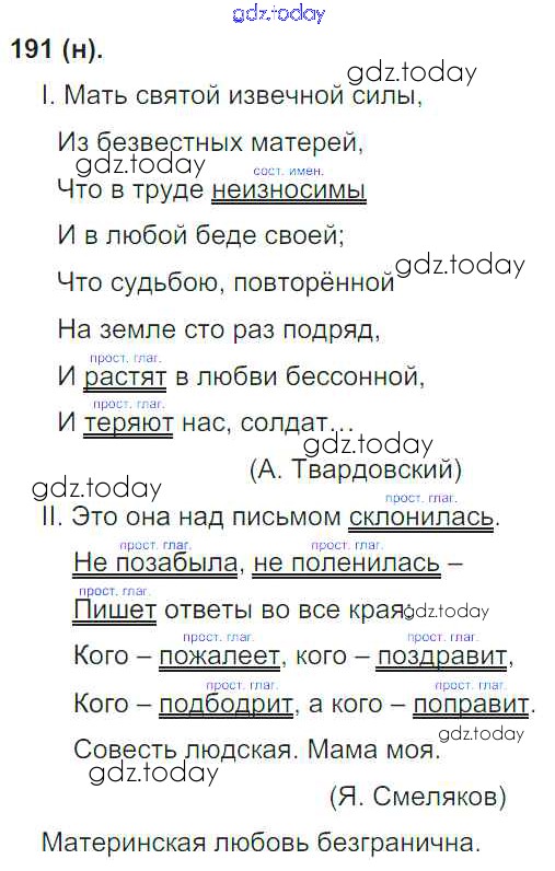 На страницах сайта gdz.today вы найдете учебный и вспомогательный материал, направленный на улучшения знаний школьной программы. ГДЗ - онлайн мир знаний Решение к упражнениям 191 Учебнику по Русскому языку для 8 класса Бархударов, Крючков Просвещение 2018