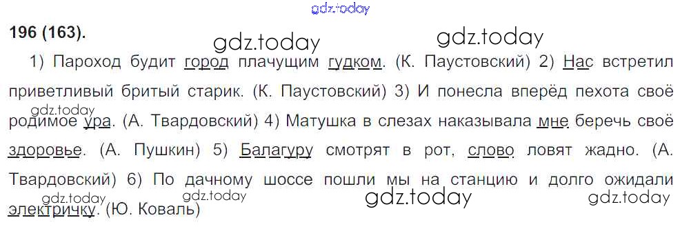 На страницах сайта gdz.today вы найдете учебный и вспомогательный материал, направленный на улучшения знаний школьной программы. ГДЗ - онлайн мир знаний Решение к упражнениям 196 Учебнику по Русскому языку для 8 класса Бархударов, Крючков Просвещение 2018
