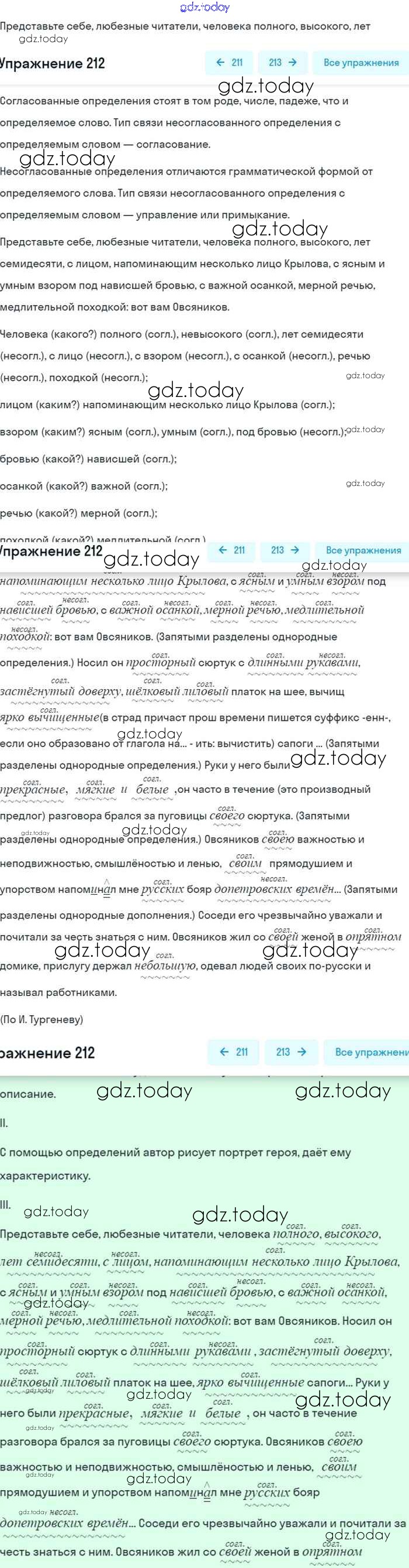 На страницах сайта gdz.today вы найдете учебный и вспомогательный материал, направленный на улучшения знаний школьной программы. ГДЗ - онлайн мир знаний Упражнения 212 Учебнику по Русскому языку для 8 класса Бархударов, Крючков Просвещение 2018