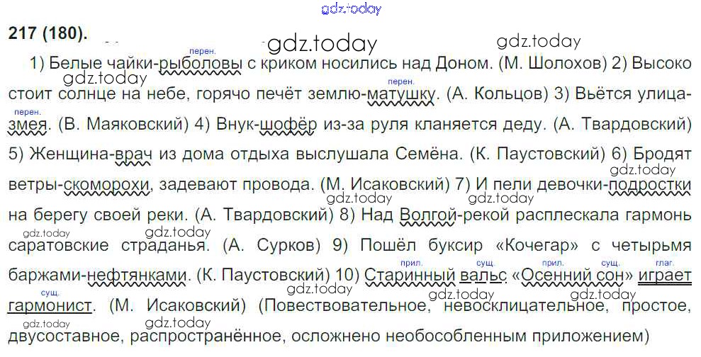 На страницах сайта gdz.today вы найдете учебный и вспомогательный материал, направленный на улучшения знаний школьной программы. ГДЗ - онлайн мир знаний Решение к упражнениям 217 Учебнику по Русскому языку для 8 класса Бархударов, Крючков Просвещение 2018