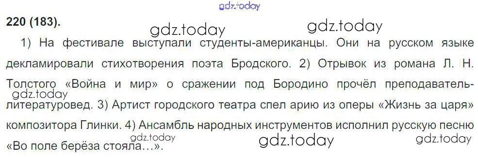 На страницах сайта gdz.today вы найдете учебный и вспомогательный материал, направленный на улучшения знаний школьной программы. ГДЗ - онлайн мир знаний Решение к упражнениям 220 Учебнику по Русскому языку для 8 класса Бархударов, Крючков Просвещение 2018