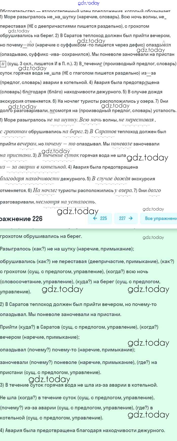 На страницах сайта gdz.today вы найдете учебный и вспомогательный материал, направленный на улучшения знаний школьной программы. ГДЗ - онлайн мир знаний Упражнения 226 Учебнику по Русскому языку для 8 класса Бархударов, Крючков Просвещение 2018