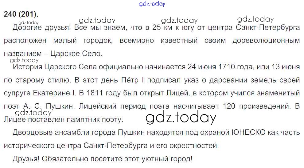 На страницах сайта gdz.today вы найдете учебный и вспомогательный материал, направленный на улучшения знаний школьной программы. ГДЗ - онлайн мир знаний Решение к упражнениям 240 Учебнику по Русскому языку для 8 класса Бархударов, Крючков Просвещение 2018