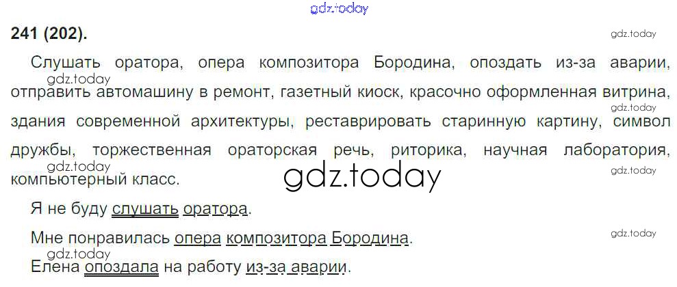На страницах сайта gdz.today вы найдете учебный и вспомогательный материал, направленный на улучшения знаний школьной программы. ГДЗ - онлайн мир знаний Решение к упражнениям 241 Учебнику по Русскому языку для 8 класса Бархударов, Крючков Просвещение 2018