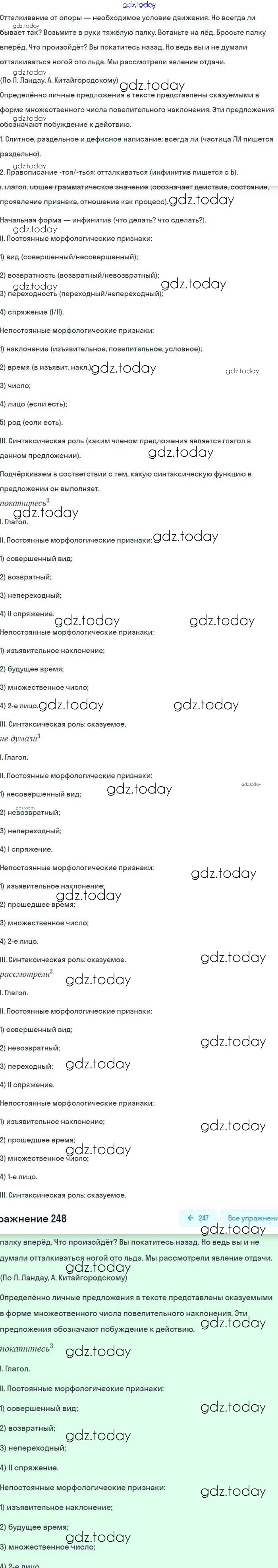 На страницах сайта gdz.today вы найдете учебный и вспомогательный материал, направленный на улучшения знаний школьной программы. ГДЗ - онлайн мир знаний Упражнения 248 Учебнику по Русскому языку для 8 класса Бархударов, Крючков Просвещение 2018