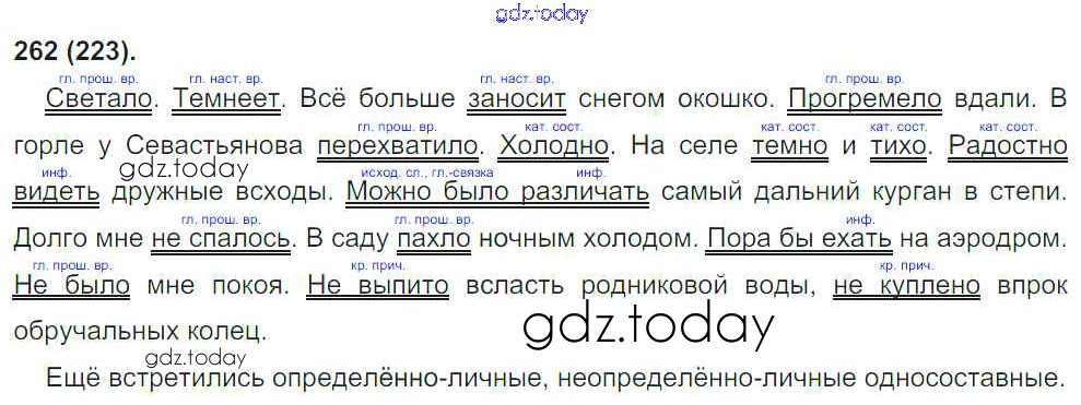 На страницах сайта gdz.today вы найдете учебный и вспомогательный материал, направленный на улучшения знаний школьной программы. ГДЗ - онлайн мир знаний Решение к упражнениям 262 Учебнику по Русскому языку для 8 класса Бархударов, Крючков Просвещение 2018