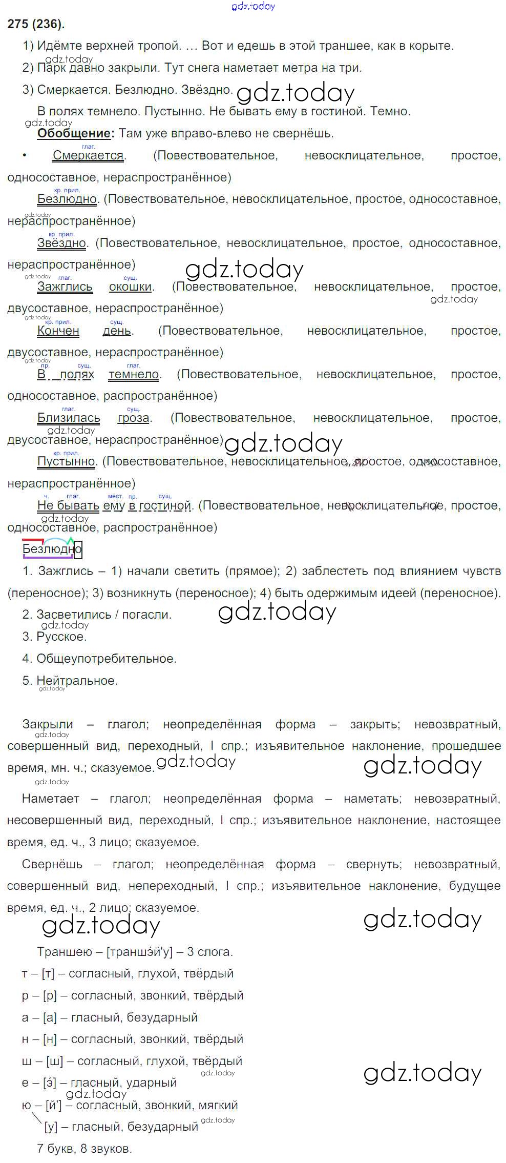 На страницах сайта gdz.today вы найдете учебный и вспомогательный материал, направленный на улучшения знаний школьной программы. ГДЗ - онлайн мир знаний Решение к упражнениям 275 Учебнику по Русскому языку для 8 класса Бархударов, Крючков Просвещение 2018