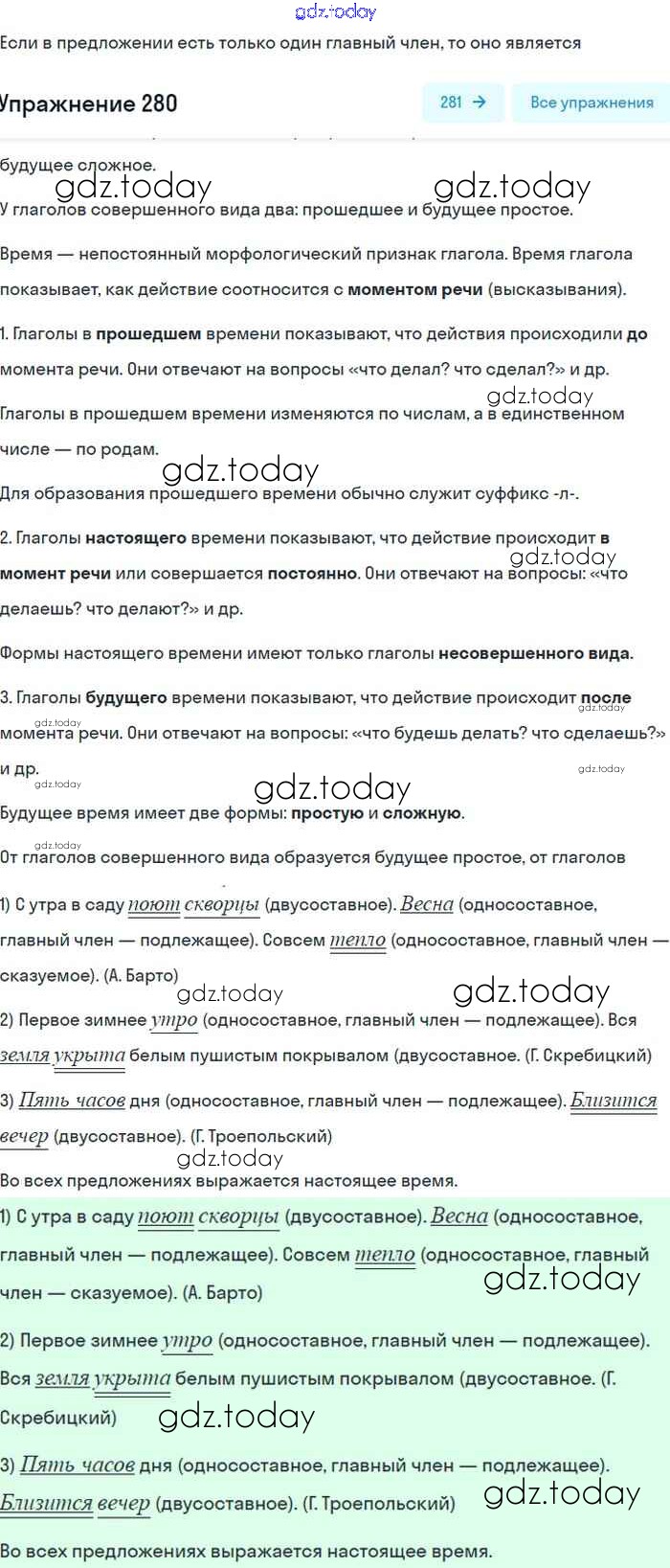 На страницах сайта gdz.today вы найдете учебный и вспомогательный материал, направленный на улучшения знаний школьной программы. ГДЗ - онлайн мир знаний Упражнения 280 Учебнику по Русскому языку для 8 класса Бархударов, Крючков Просвещение 2018