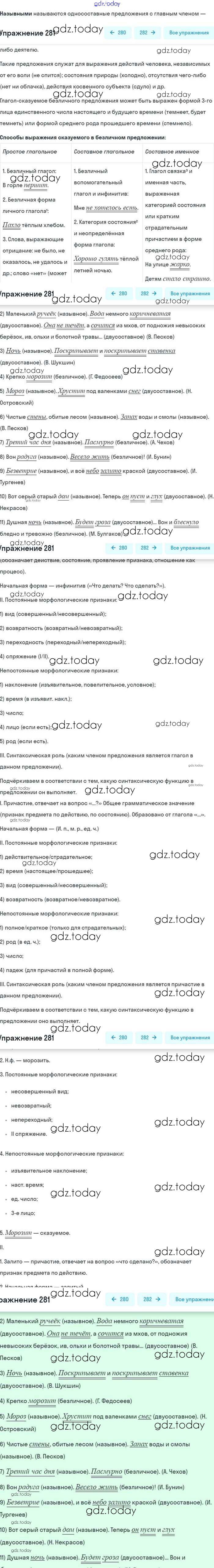 На страницах сайта gdz.today вы найдете учебный и вспомогательный материал, направленный на улучшения знаний школьной программы. ГДЗ - онлайн мир знаний Упражнения 281 Учебнику по Русскому языку для 8 класса Бархударов, Крючков Просвещение 2018