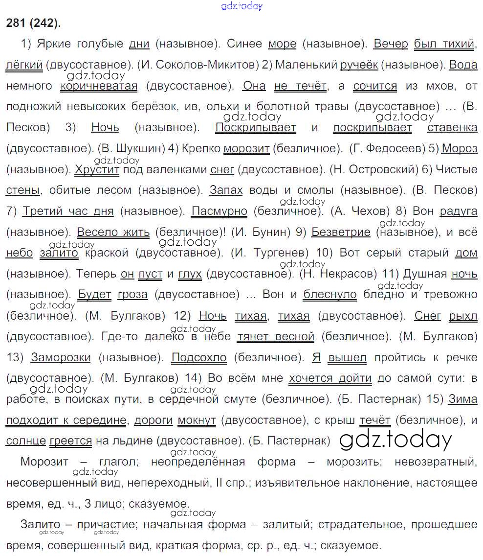 На страницах сайта gdz.today вы найдете учебный и вспомогательный материал, направленный на улучшения знаний школьной программы. ГДЗ - онлайн мир знаний Решение к упражнениям 281 Учебнику по Русскому языку для 8 класса Бархударов, Крючков Просвещение 2018