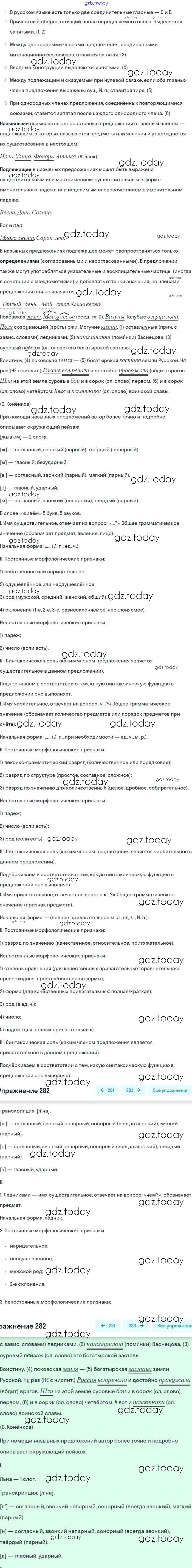 На страницах сайта gdz.today вы найдете учебный и вспомогательный материал, направленный на улучшения знаний школьной программы. ГДЗ - онлайн мир знаний Упражнения 282 Учебнику по Русскому языку для 8 класса Бархударов, Крючков Просвещение 2018