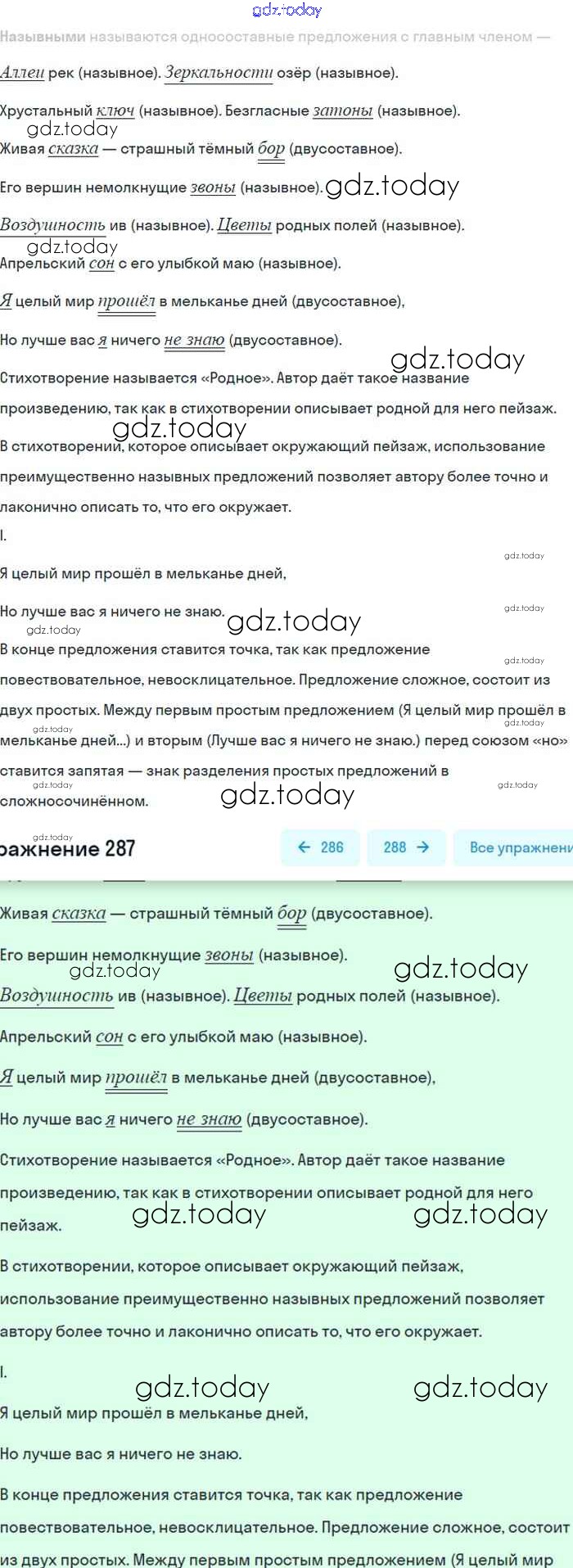 На страницах сайта gdz.today вы найдете учебный и вспомогательный материал, направленный на улучшения знаний школьной программы. ГДЗ - онлайн мир знаний Упражнения 287 Учебнику по Русскому языку для 8 класса Бархударов, Крючков Просвещение 2018