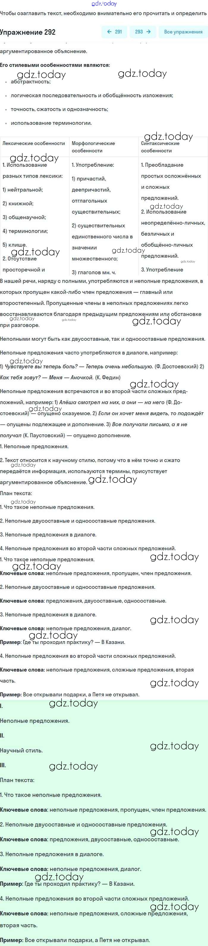 На страницах сайта gdz.today вы найдете учебный и вспомогательный материал, направленный на улучшения знаний школьной программы. ГДЗ - онлайн мир знаний Упражнения 292 Учебнику по Русскому языку для 8 класса Бархударов, Крючков Просвещение 2018