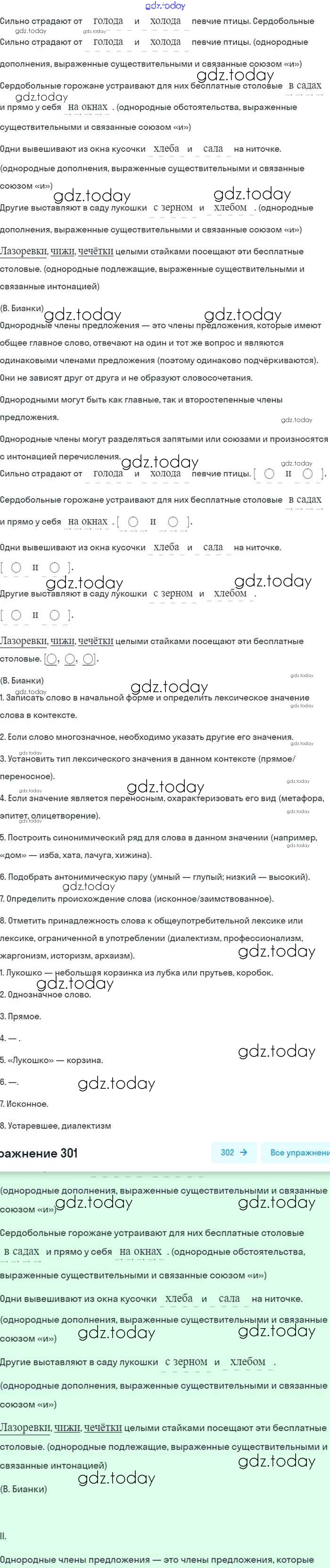 На страницах сайта gdz.today вы найдете учебный и вспомогательный материал, направленный на улучшения знаний школьной программы. ГДЗ - онлайн мир знаний Упражнения 301 Учебнику по Русскому языку для 8 класса Бархударов, Крючков Просвещение 2018