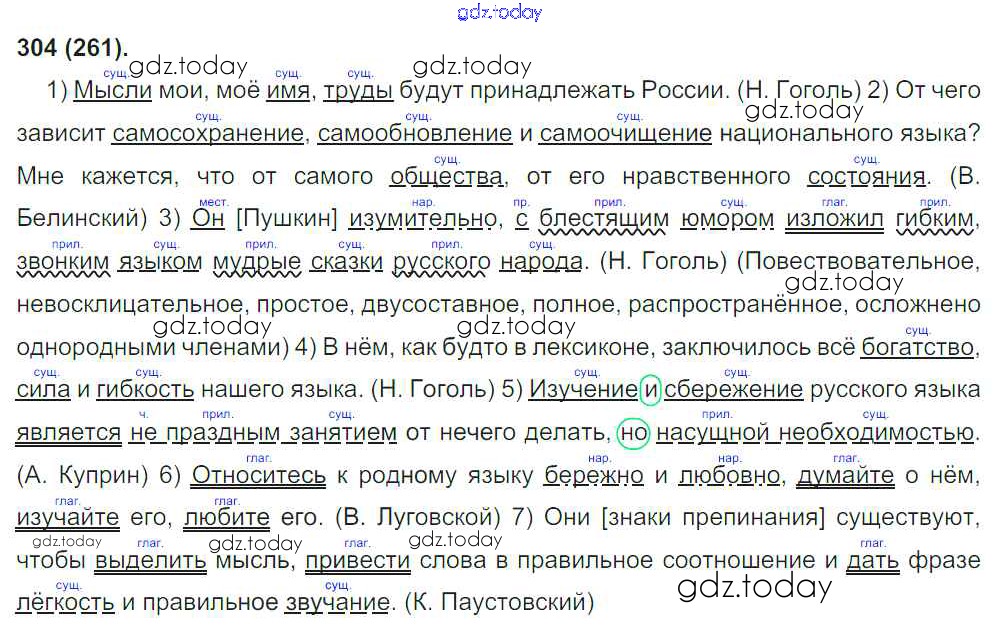 На страницах сайта gdz.today вы найдете учебный и вспомогательный материал, направленный на улучшения знаний школьной программы. ГДЗ - онлайн мир знаний Решение к упражнениям 304 Учебнику по Русскому языку для 8 класса Бархударов, Крючков Просвещение 2018