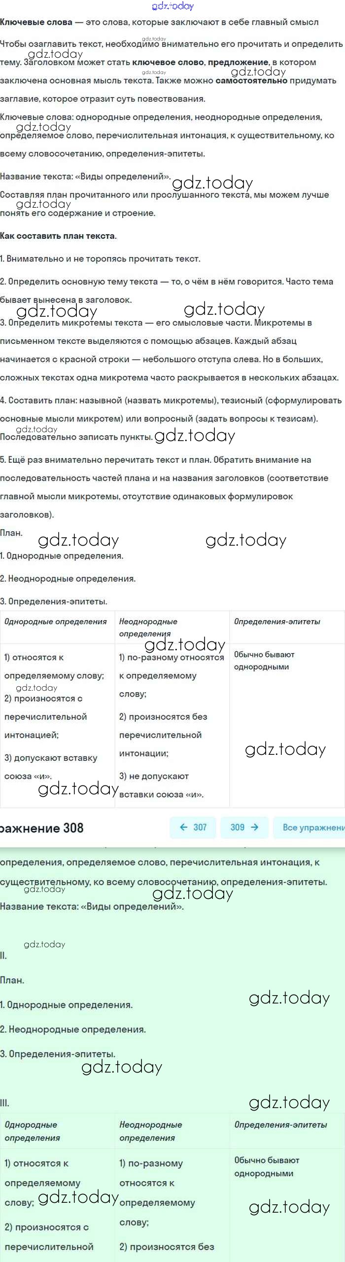 На страницах сайта gdz.today вы найдете учебный и вспомогательный материал, направленный на улучшения знаний школьной программы. ГДЗ - онлайн мир знаний Упражнения 308 Учебнику по Русскому языку для 8 класса Бархударов, Крючков Просвещение 2018