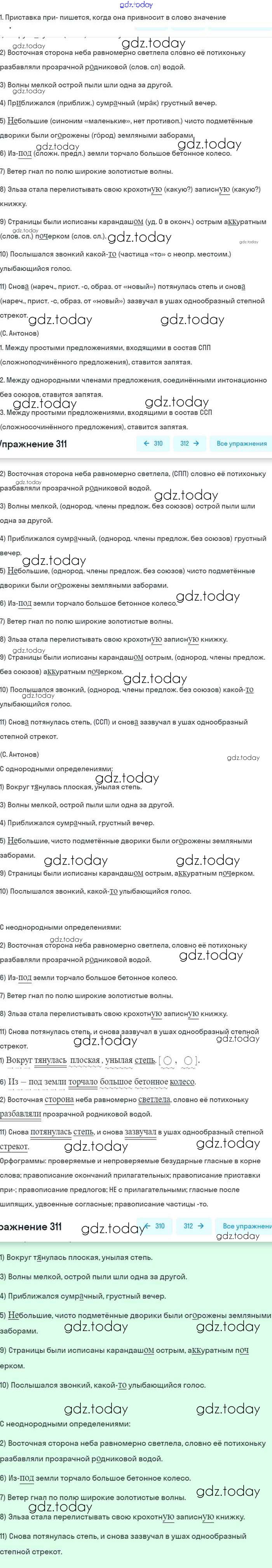 На страницах сайта gdz.today вы найдете учебный и вспомогательный материал, направленный на улучшения знаний школьной программы. ГДЗ - онлайн мир знаний Упражнения 311 Учебнику по Русскому языку для 8 класса Бархударов, Крючков Просвещение 2018