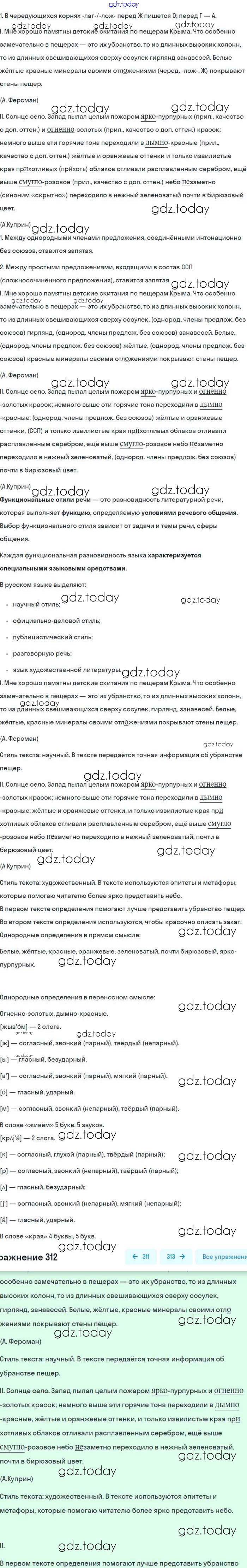 На страницах сайта gdz.today вы найдете учебный и вспомогательный материал, направленный на улучшения знаний школьной программы. ГДЗ - онлайн мир знаний Упражнения 312 Учебнику по Русскому языку для 8 класса Бархударов, Крючков Просвещение 2018