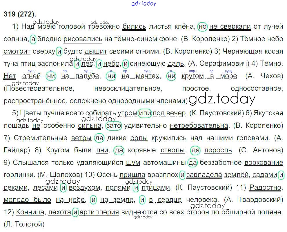 Ответы к Решение к упражнениям 319 Учебнику по Русскому языку для 8 класса Бархударов, Крючков Просвещение 2018