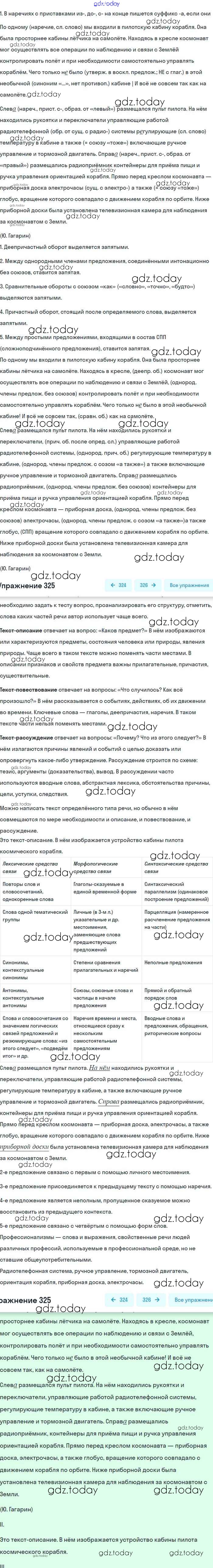 На страницах сайта gdz.today вы найдете учебный и вспомогательный материал, направленный на улучшения знаний школьной программы. ГДЗ - онлайн мир знаний Упражнения 325 Учебнику по Русскому языку для 8 класса Бархударов, Крючков Просвещение 2018