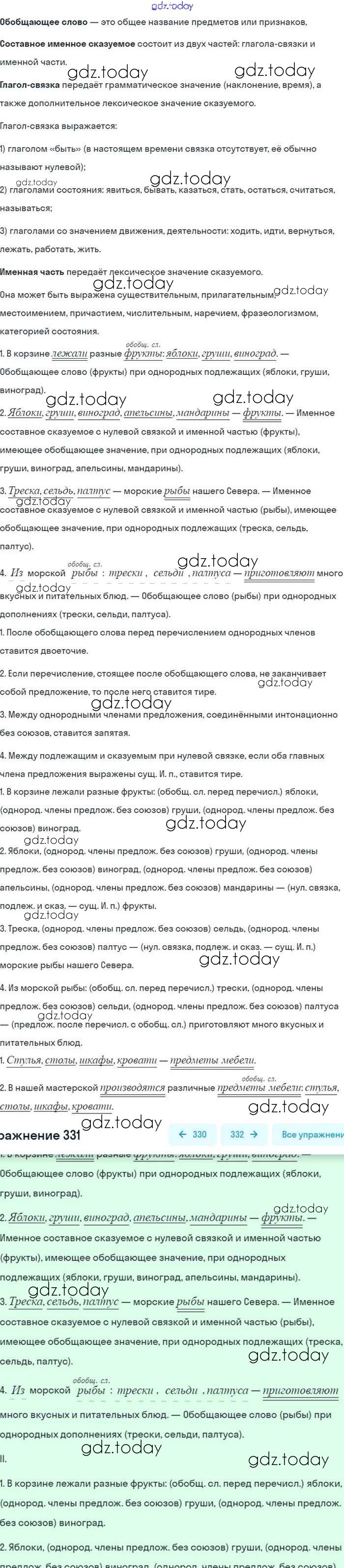 На страницах сайта gdz.today вы найдете учебный и вспомогательный материал, направленный на улучшения знаний школьной программы. ГДЗ - онлайн мир знаний Упражнения 331 Учебнику по Русскому языку для 8 класса Бархударов, Крючков Просвещение 2018
