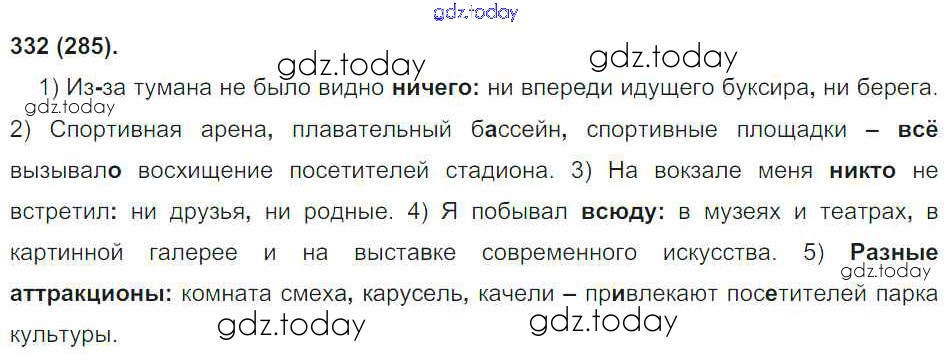 На страницах сайта gdz.today вы найдете учебный и вспомогательный материал, направленный на улучшения знаний школьной программы. ГДЗ - онлайн мир знаний Решение к упражнениям 332 Учебнику по Русскому языку для 8 класса Бархударов, Крючков Просвещение 2018