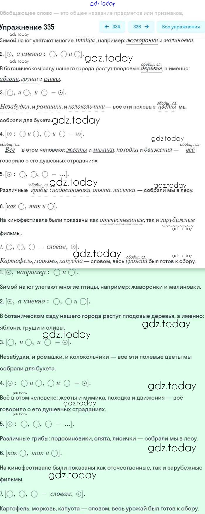 На страницах сайта gdz.today вы найдете учебный и вспомогательный материал, направленный на улучшения знаний школьной программы. ГДЗ - онлайн мир знаний Упражнения 335 Учебнику по Русскому языку для 8 класса Бархударов, Крючков Просвещение 2018