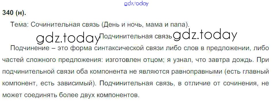 На страницах сайта gdz.today вы найдете учебный и вспомогательный материал, направленный на улучшения знаний школьной программы. ГДЗ - онлайн мир знаний Решение к упражнениям 340 Учебнику по Русскому языку для 8 класса Бархударов, Крючков Просвещение 2018