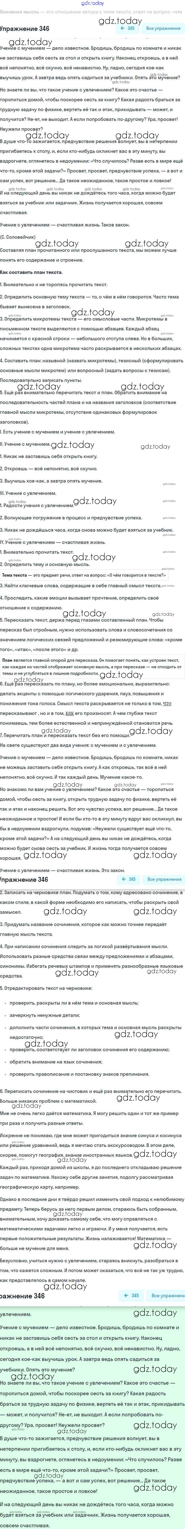 На страницах сайта gdz.today вы найдете учебный и вспомогательный материал, направленный на улучшения знаний школьной программы. ГДЗ - онлайн мир знаний Упражнения 346 Учебнику по Русскому языку для 8 класса Бархударов, Крючков Просвещение 2018