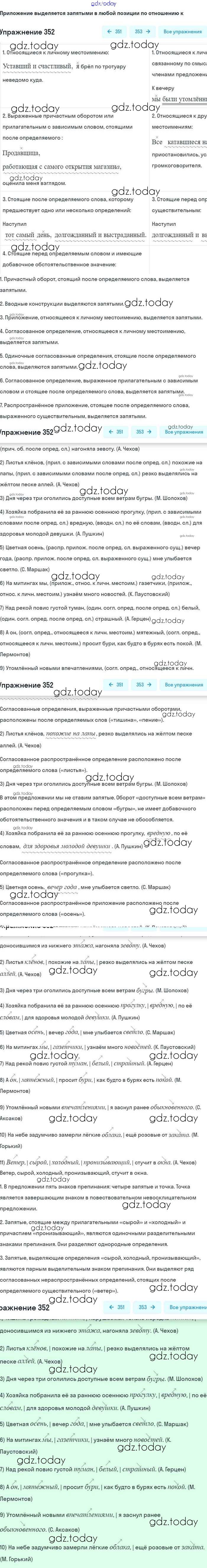 На страницах сайта gdz.today вы найдете учебный и вспомогательный материал, направленный на улучшения знаний школьной программы. ГДЗ - онлайн мир знаний Упражнения 352 Учебнику по Русскому языку для 8 класса Бархударов, Крючков Просвещение 2018