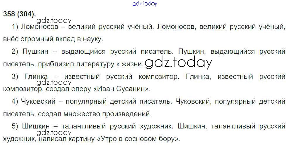 На страницах сайта gdz.today вы найдете учебный и вспомогательный материал, направленный на улучшения знаний школьной программы. ГДЗ - онлайн мир знаний Решение к упражнениям 358 Учебнику по Русскому языку для 8 класса Бархударов, Крючков Просвещение 2018