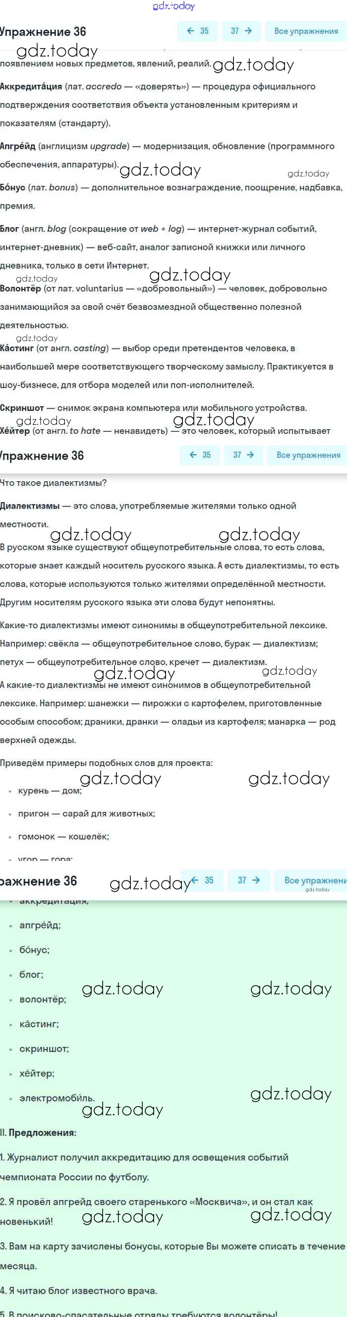 На страницах сайта gdz.today вы найдете учебный и вспомогательный материал, направленный на улучшения знаний школьной программы. ГДЗ - онлайн мир знаний Упражнения 36 Учебнику по Русскому языку для 8 класса Бархударов, Крючков Просвещение 2018