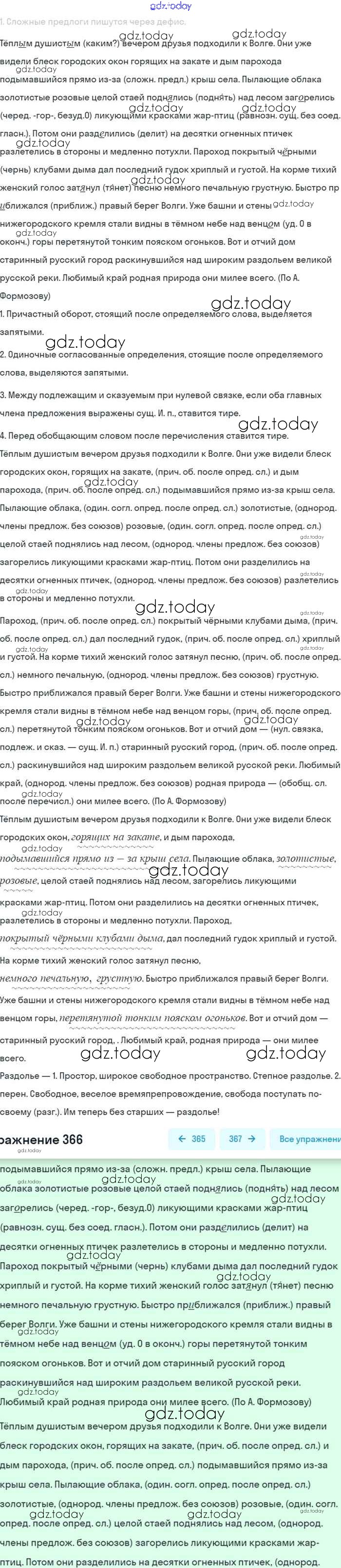 На страницах сайта gdz.today вы найдете учебный и вспомогательный материал, направленный на улучшения знаний школьной программы. ГДЗ - онлайн мир знаний Упражнения 366 Учебнику по Русскому языку для 8 класса Бархударов, Крючков Просвещение 2018