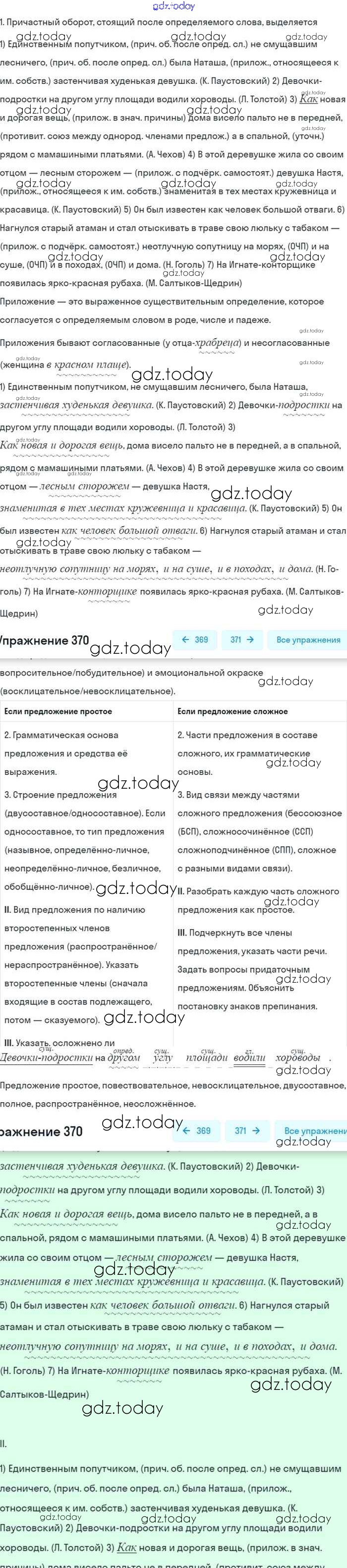 На страницах сайта gdz.today вы найдете учебный и вспомогательный материал, направленный на улучшения знаний школьной программы. ГДЗ - онлайн мир знаний Упражнения 370 Учебнику по Русскому языку для 8 класса Бархударов, Крючков Просвещение 2018