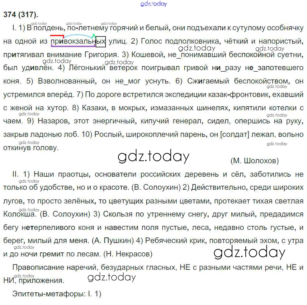На страницах сайта gdz.today вы найдете учебный и вспомогательный материал, направленный на улучшения знаний школьной программы. ГДЗ - онлайн мир знаний Решение к упражнениям 374 Учебнику по Русскому языку для 8 класса Бархударов, Крючков Просвещение 2018