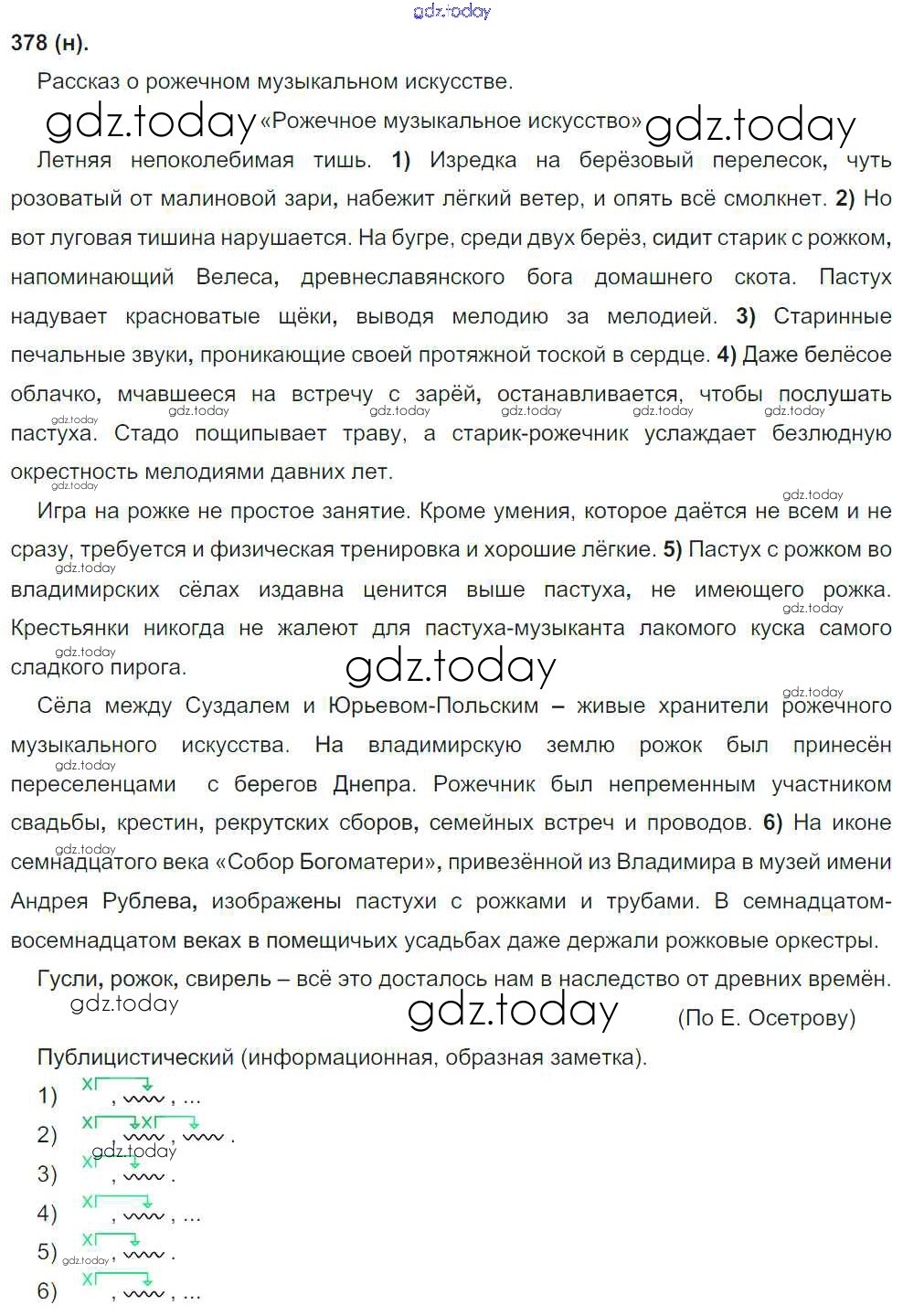 Ответы к Решение к упражнениям 378 Учебнику по Русскому языку для 8 класса Бархударов, Крючков Просвещение 2018
